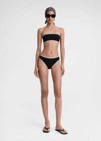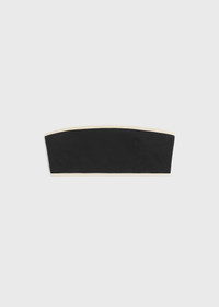 Minimalist bikini top inspired by the contrasting stripes on TOTEME's Centered monogram silk scarf. It's made from fully lined stretch jersey to a strapless bandeau silhouette that's supported with a silicone trim inside. Wear it with the coordinating bikini bottoms or mix and match with the opposite color combination. Details & Fit - Black - Light hay trim - Fully lined - 71% Recycled polyamide, 29% elastane - 30°C Machine wash - Style number 241-WSW1041-FB0097 - The model is 175cm/59 tall and wears a size S - True to size