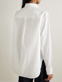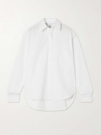 EDITORS'NOTES TOTEME specializes in refined staples that you'll wear season after season. This striped organic cotton-poplin shirt is cut for a loose fit and has a curved, split hem that adds to the relaxed look. Note the embroidered logo on the chest. SIZE & FIT TOTEME follows its own size guide, please refer to below: - DK 32 = UK 4/ US 0/ IT 36 - DK 34 = UK 6/ US 2/ IT 38 - DK 36 = UK 8/ US 4/ IT 40 - DK 38 = UK 10/ US 6/ IT 42 - DK 40 = UK 12/ US 8/ IT 44 - DK 42 = UK 14/ US 10/ IT 46 - Fits true to size, however those who are between sizes should take the smaller size - Designed for a loose fit - Mid-weight, non-stretchy fabric - Model is 175cm/ 5'9" and is wearing a DK 34 - Bust: 81cm/ 32" - Waist: 62cm/ 24.5" - Hip: 89cm/ 35" DETAILS & CARE - White and blue organic cotton-poplin - Button fastenings through front - 100% organic cotton - Machine wash or dry clean