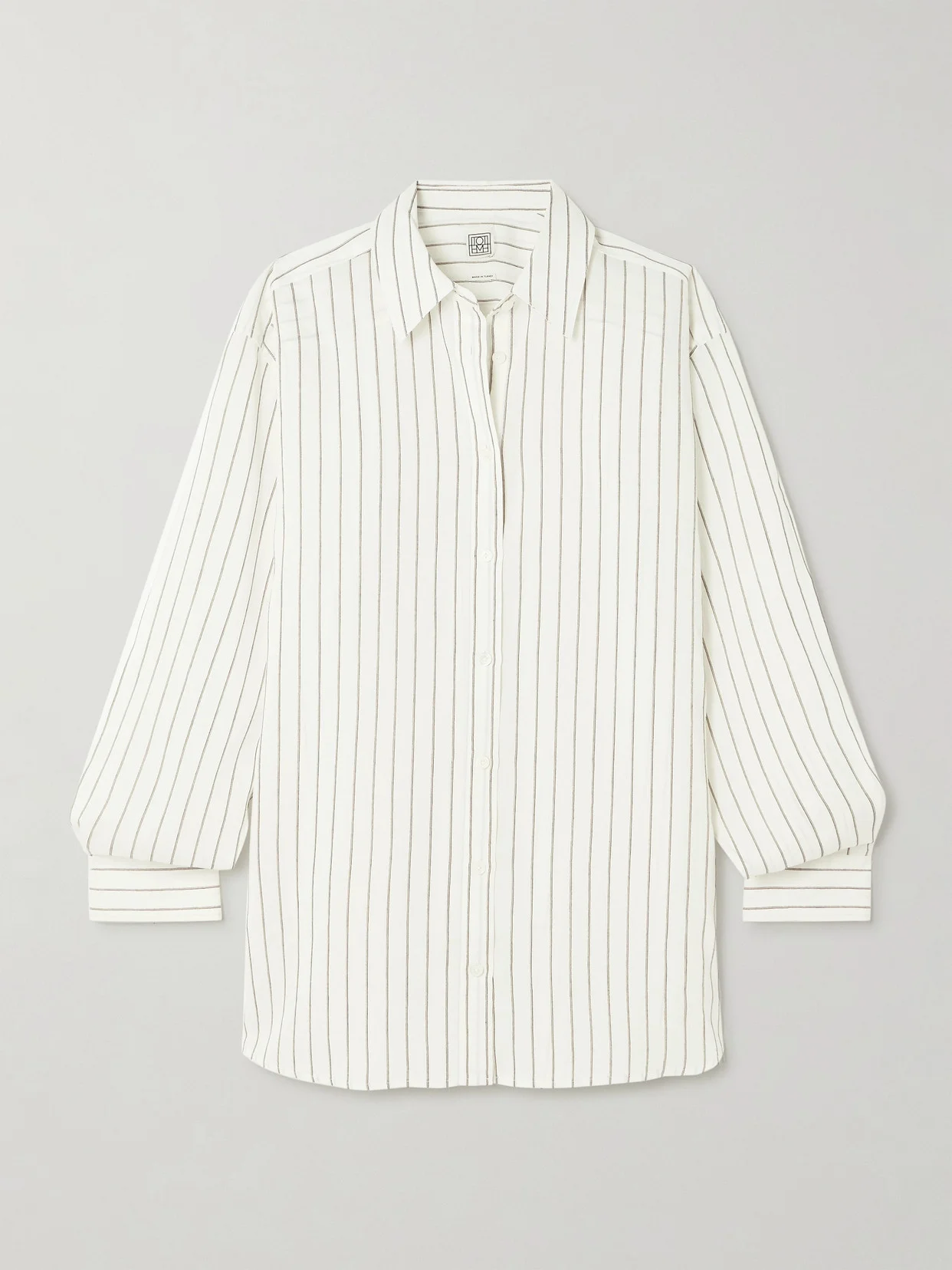 TOTEME's shirt is a timeless classic you'll turn to for seasons to come. It's made from white voile patterned with beige and black stripes that elongate your frame and has a relaxed shape topped with a smart collar. Leave yours open over a tank or tuck it into the label's tailoring.