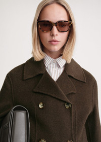 TOTEME jacket structured with waist darts that help create a subtle hourglass silhouette. Made from light wool doublé, it features a double-breasted button front and discreet side pockets. Leave it open to show off the matching interior, which is a product of the fabric's double-faced construction. Details and fit - Chocolate mélange - Double-breasted button front - Side-seam pockets - 100% Wool - Dry clean - The model is 179cm/5’10” tall and wears a size 36 - True to size - Style number 234-WRTWOU101-FB0006
