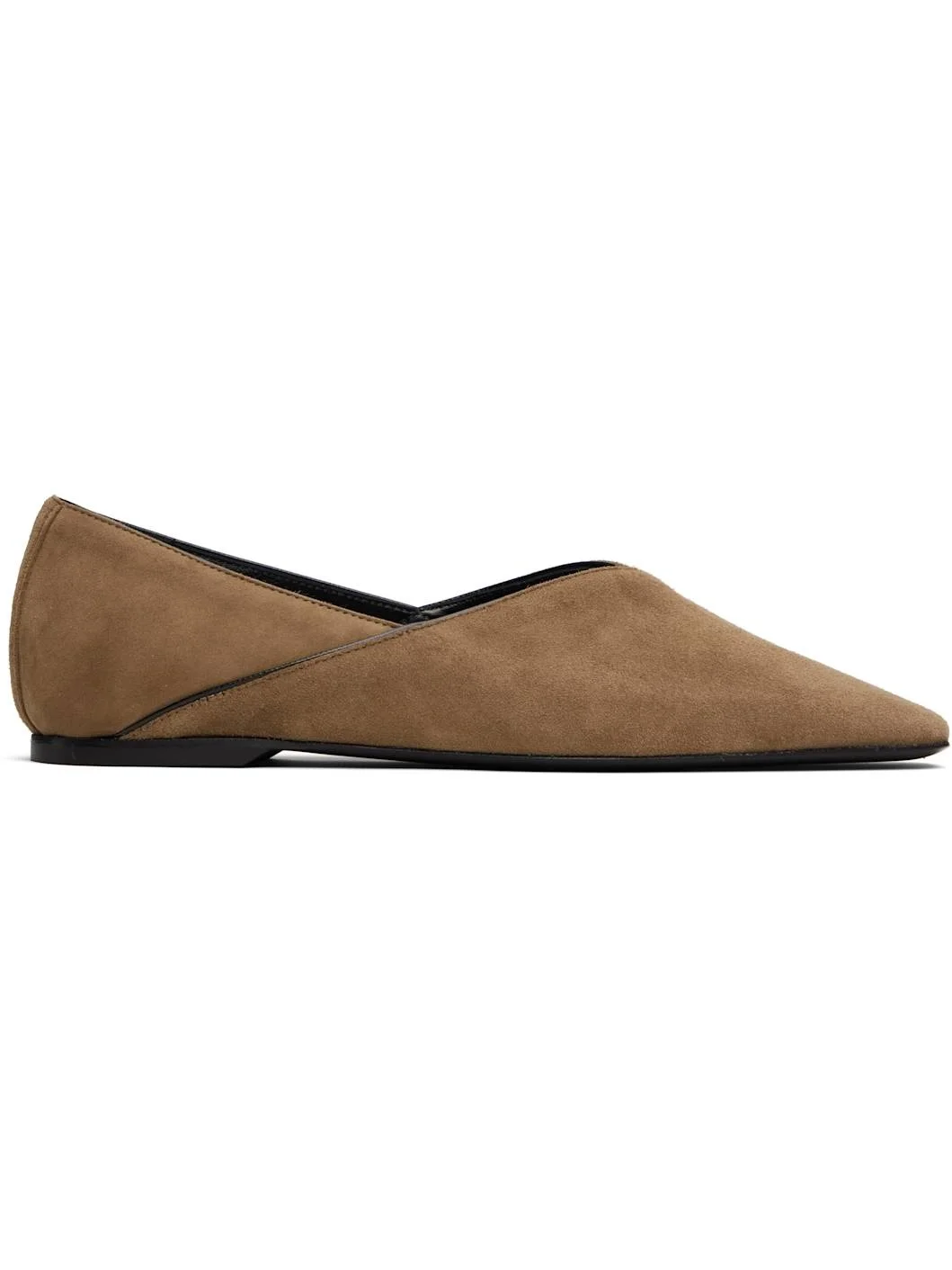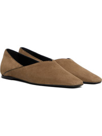 LWG-certified sheepskin suede ballerina flats in taupe. · Square toe · Piping at collar and sides · Rubber heel · Polished leather sole Supplier color: Hazel Upper: sheepskin. Sole: leather. Made in Italy 252771F118003