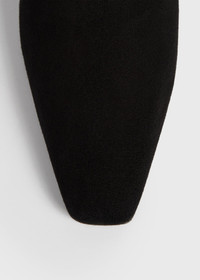 TOTEME Chelsea boots contoured with a high-top, elongated silhouette inspired by our signature Mid heel boots. They are made in Spain from soft suede with elasticated side panels for easy wearing. Let them peep below cropped trousers and skirts. Details & Fit - Black - Elasticated side panels - Leather insole - 100% sheep leather; lining: 100% sheep leather; sole: 50% cow leather, 50% TPU rubber - Care instructions and dust bag included - Style number 251-WAS0206-LE0012 - True to size
