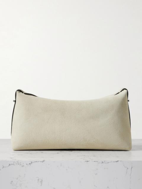 EDITORS'NOTES Sleek and understated, TOTEME's clutch is made from plush suede and traced with a belt-inspired panel that you can slip your hand under. There's just enough space inside for your phone, lipstick and a slip pocket for your cards. SIZE & FIT This item’s measurements are: - Handle Drop: 18cm / 7.1in - Depth: 10cm / 3.9in - Height: 15cm / 5.9in - Width: 30cm / 11.8in DETAILS & CARE - Black suede - Top handle - Internal slip pocket - Unlined - Zip fastening