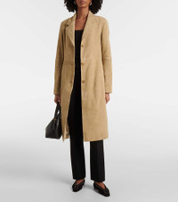 Characterized by immaculate lines and expert craft, this coat conveys Toteme's vision of minimalism. It's made from panels of supple suede with a buttoned front and a slightly cinched waistline for an elegant fit. Product Details - Material: 100% leather - Care instructions: specialist clean - Made in Turkey - Designer color name: Desert - Closure: double-breasted buttoned front - Pockets: slant pockets - Lining: 100% viscose - Item number: P01040482 Size & Fit - True to size - Cinched waist - Non-stretchy fabric - The model seen in the picture is 178cm-5'10" and wearing a size DT 34