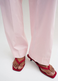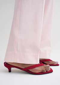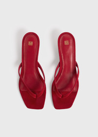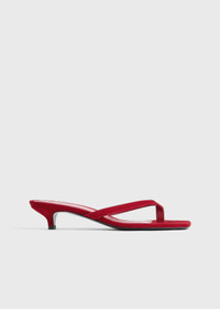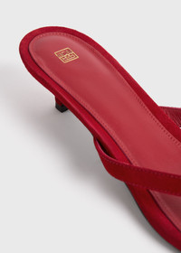 TOTEME's sandals are an elevated take on summertime flip-flops. They are crafted in Italy from plush suede to a sleek silhouette with a comfortably padded insole and a 35mm kitten heel. Use them to instill a directional mood into occasion looks. Details - Scarlet - Leather insole and sole - 100% sheep leather; lining: 100% sheep leather; sole: 100% cow leather - Care instructions and dust bag included - Style number 252-WAS1010-LE0045 Fit information - Average heel height 35mm/1.4" – proportional to shoe size - True to size. If you have narrow feet, consider taking a smaller size for a foot-hugging fit Origin & Certificates - By purchasing this product you are supporting Leather Working Group-certified tanneries. - Country of origin: Italy - Manufacturer: Effemme S.r.l.