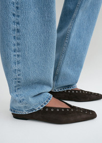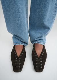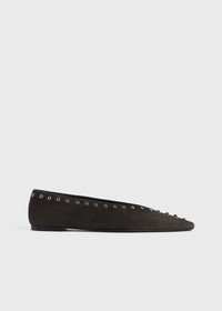 TOTEME ballerina flats set with silver-tone metal eyelets and decorative laces. They are made in Italy from suede lined in supple leather and are set with a cushioned insole and soft heel counter for comfort. Wear them throughout the week with jeans. Details & Fit - Pepper - Metal eyelets, decorative laces - Leather lining, insole and sole - 100% sheep leather; lining: 100% sheep leather; sole: 100% cow leather - Care instructions and dust bag included - Style number 252-WAS0230-LE0114 - True to size