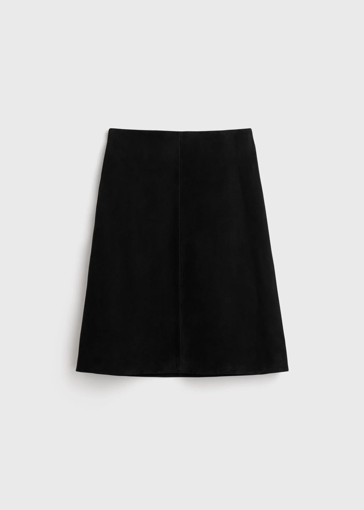 Our confident A-line skirt revisited in soft suede with a soft drape. Designed to sit at the hips and fall just over the knee, it features side slip pockets, a concealed back zipper and full satin lining. Complete a coordinated look with the matching top. Details - Black - Side pockets - Concealed back zipper - Full lining - 100% lamb leather; lining: 100% viscose - Specialist clean - Style number 261-WRB4456-LE0200 Fit information - The model is 178cm/5'10" tall and wears a size 36 - Designed to sit at the hips Origin & Certificates - Country of origin: Turkey - Manufacturer: Lider Deri Urunleri San. Ve Tic. A.S