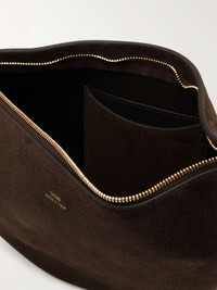 EDITORS'NOTES TOTEME’s minimal yet sophisticated approach results in sleek accessories that’ll never date. This shoulder bag is made from supple suede and has a sculptural asymmetric profile and gold-tone hardware. It’ll hold your cardholder, lipstick and compact. SIZE & FIT This item’s measurements are: - Handle Drop: 22cm / 8.7in - Depth: 3cm / 1.2in - Height: 19cm / 7.5in - Width: 35cm / 13.8in DETAILS & CARE - Brown suede (Cow) - Shoulder strap - Internal slip pocket - Zip fastening along top - Weighs approximately 1lbs/ 0.48kg - Designer color: Pepper