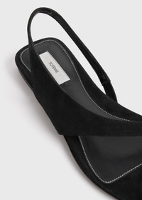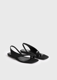 TOTEME flat sandals hugging the big toe with a thong connected to an elasticated slingback through sculptural craftsmanship. They are made by expert Italian shoemakers from suede with a cushioned insole and anti-slip rubber heel. Wear them throughout summer with occasion and off-duty looks. Details & Fit - Black - Elasticated slingback - Leather insole and sole - 100% sheep leather; lining: 100% sheep leather; sole: 100% cow leather - Care instructions and dust bag included - Style number 252-WAS0202-LE0012 - True to size. If you have narrow feet, consider taking a smaller size for a foot-hugging fit