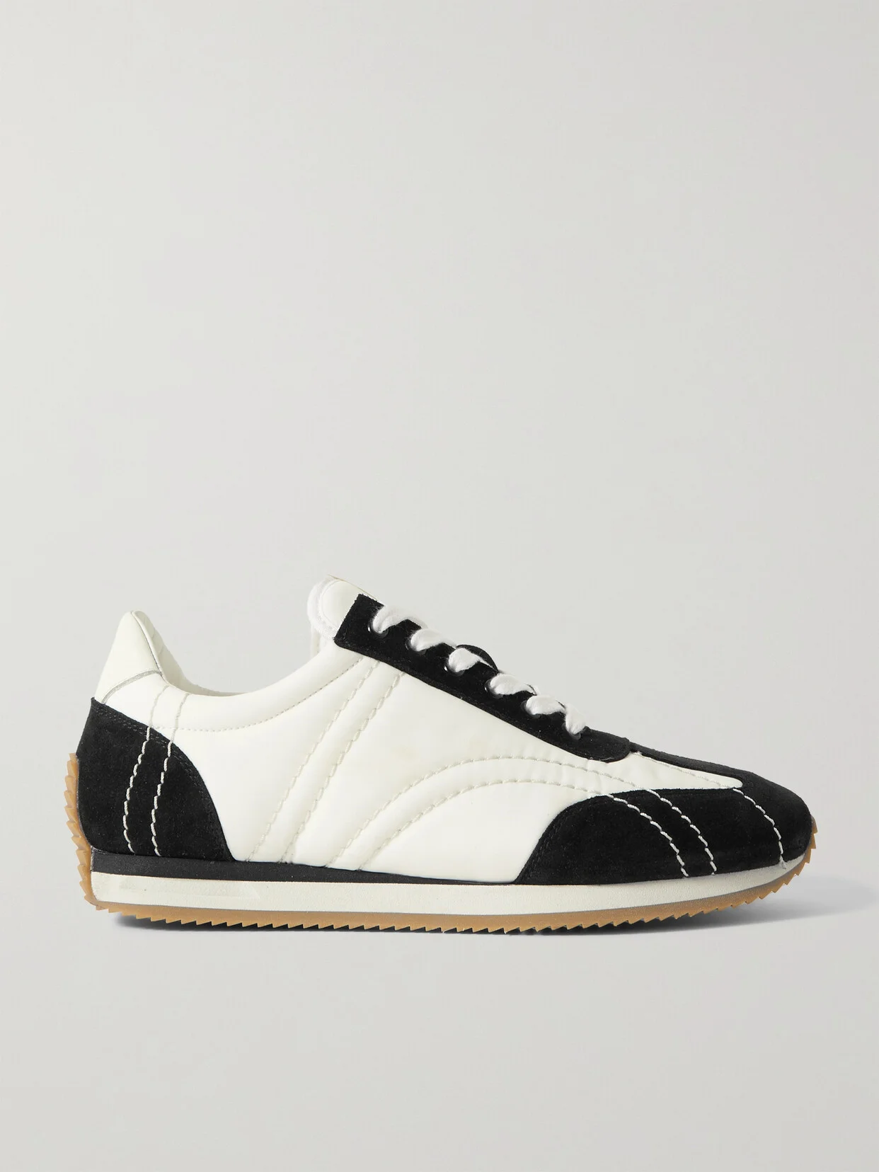 EXCLUSIVE AT NET-A-PORTER. TOTEME's take on athleisure is exactly what you'd expect from the brand - timeless, understated and easy to wear. Modeled on classic running styles, these sneakers are made from panels of shell and suede with leather trims and textured rubber soles that creep up over the heels.
