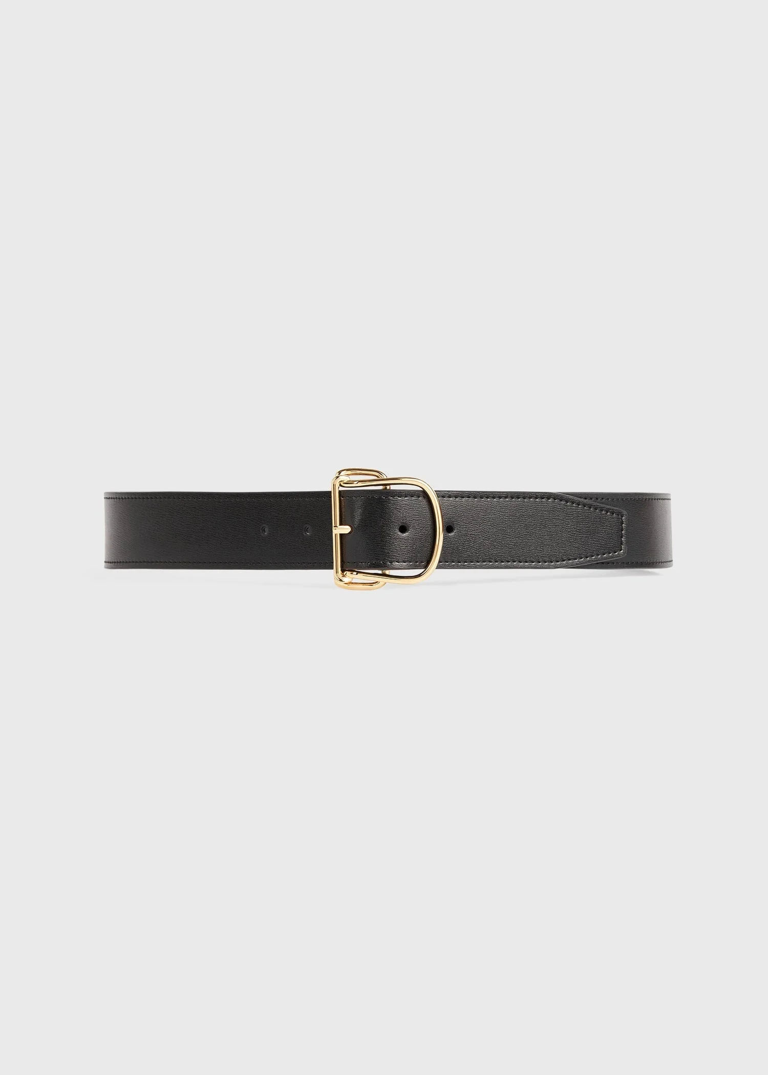 New TOTEME belt set with a sculptural buckle inspired by the intertwining shapes of the Swirl jewelry pieces. It is Italian-crafted from Palmellatta leather to a 4cm width devised to complement statement looks. Wear it against light-hued trousers for contrast. Details & Fit - Black - Gold-tone metal buckle - Leather lining - 100% cow leather - Care instructions and dust bag included - Style number 252-WAM0046-LE0025 - Length 70cm/27, 80cm/31 or 90cm/35 (measured from buckle base to middle hole) Width 4cm/1.6"