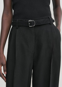 Italian-made TOTEME belt fitted with a silver-tone metal buckle inspired by our Swirl jewelry. Style it with tonal separates as part of a curated look. Details & Fit - Black - Silver-tone metal buckle - Leather reverse - 100% cow leather; lining: 100% cow leather - Care instructions and dust bag included - Style number 253-WAM0047-LE0004 - Length 70cm/27, 80cm/31 or 90cm/35 - Width 2.5cm/0.9"