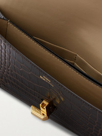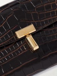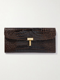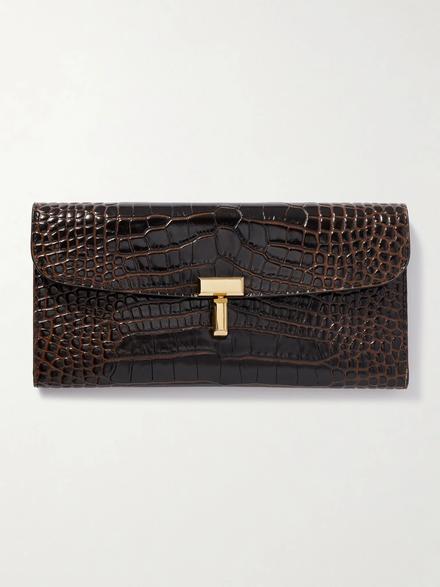 Simple and sophisticated, TOTEME's wallet is crafted from croc-effect leather and accented with gold-tone 'T-Lock' hardware. The interior is fitted with six card slots and three compartments to keep all your essentials neatly organized. Details & Care - Dark-brown croc-effect leather (Cow) - Three internal compartments, six card slots - Fully lined - Twist lock-fastening front flap