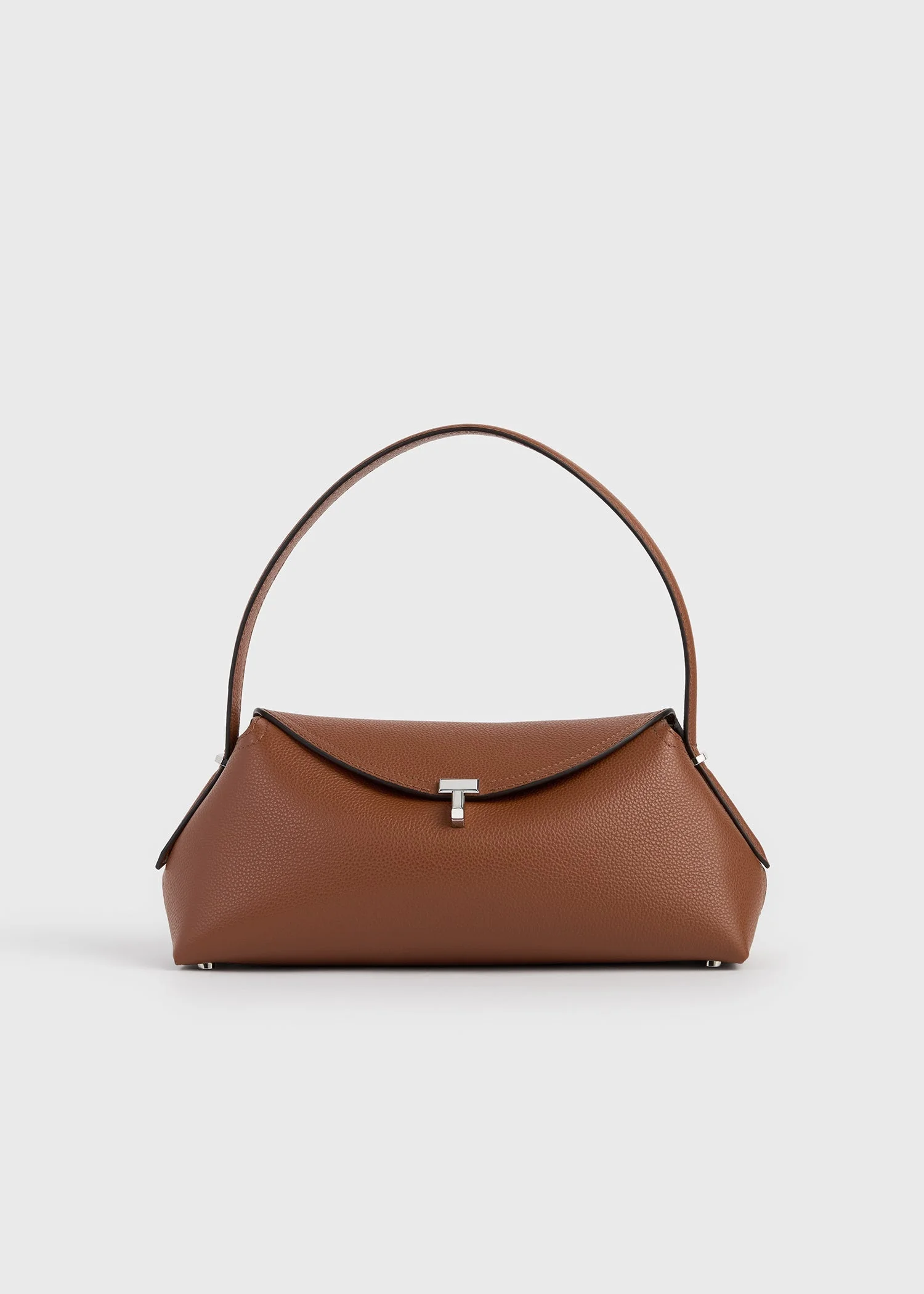 A new, east-west iteration of the original T-lock top-handle, named for its distinctive twist-lock closure. Crafted in Italy from grained leather, with contrast top-stitching, it has elongated proportions and nestles naturally under the shoulder. Details - Sienna - Adjustable strap - Silver-tone metal hardware - Microsuede lining, internal card slot - 100% cow leather, lining: 60% polyurethane, 40% polyamide - Care instructions and dust bag included - Style number 261-WAL0127-LE0030 Fit information - Strap drop length: adjustable (40cm/15.7" on middle hole) - Top handle drop 18cm/7.1'' - Height 15cm/5.9" - Width 35cm/13.8" - Depth 11.5cm/4.5" Origin & Certificates - By purchasing this product you are supporting Leather Working Group-certified tanneries - Made in Italy - Manufacturer: Artigiani Veneziani S.r.l.