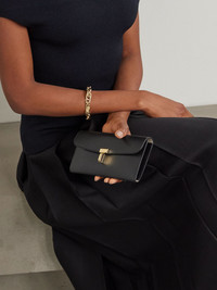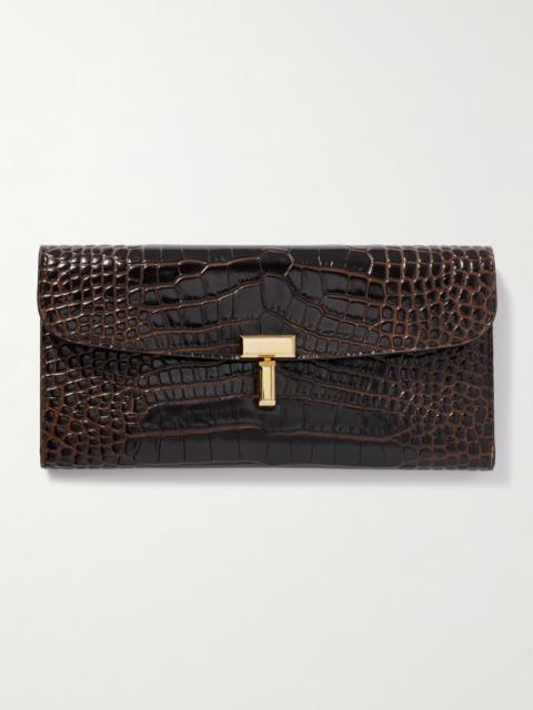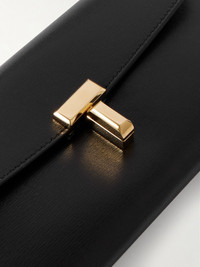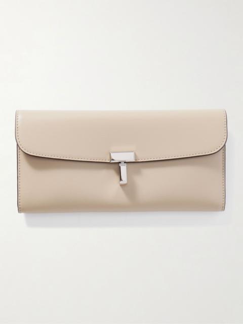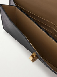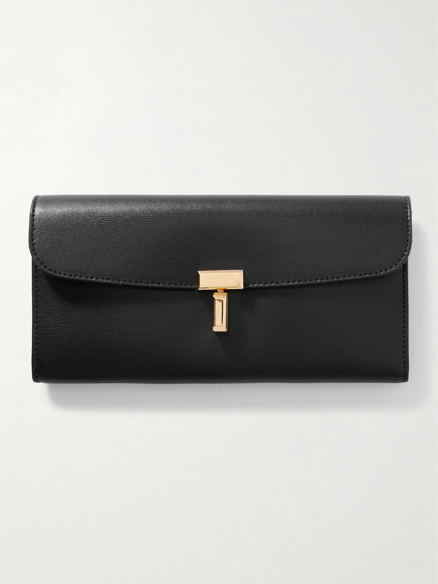 Simple and sophisticated, TOTEME's wallet is crafted from textured-leather with stitched trims and accented with gold-tone 'T-Lock' hardware. The interior is fitted with six card slots and three compartments to keep all your essentials neatly organized. Details & Care - Black textured-leather (Cow) - Twist lock-fastening front flap