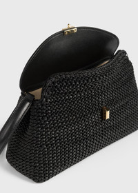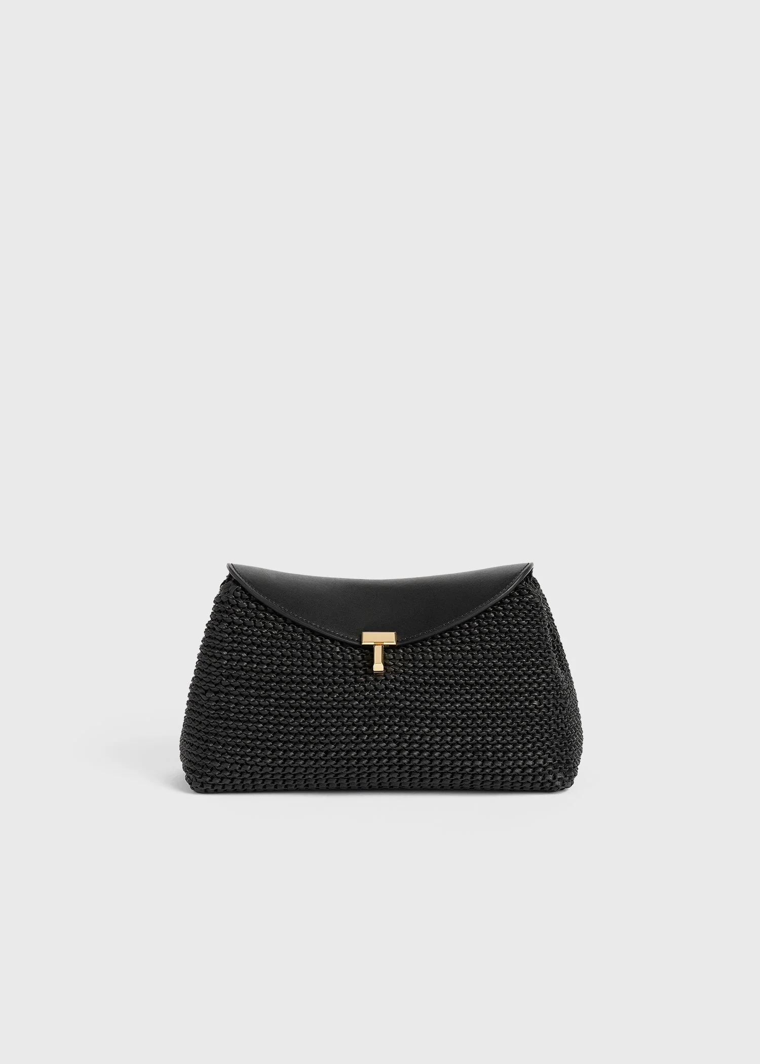 A seasonal iteration of our iconic clutch bag, named after the signature T-lock closure and curved to nestle under the arm with ease. It is crafted in Italy from hand-woven leather and opens to a microsuede interior fitted with a card slot. Hold it in your hand or carry it across the body using the optional strap. Details - Black - Detachable, adjustable strap (must be attached with the clasp opening facing inwards) - Gold-tone twist lock - Microsuede lining, internal card slot - 100% sheep leather; lining: 60% polyamide, 40% polyurethane - Care instructions and dust bag included - Style number 252-WAL950-LE0134 Fit information - Strap drop length adjustable (44cm/17.3" on middle hole) Height 14cm/5.5" Width 26cm/10.2" Depth 8.5cm/3.3" Origin & Certificates - By purchasing this product you are supporting Leather Working Group-certified tanneries. - Country of origin: Italy - Manufacturer: Artigiani Veneziani