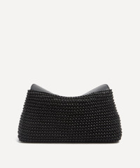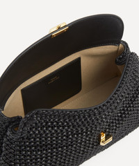 DETAILS Clutch bag Woven leather Gold-tone protective feet Beige microsuede lining Interior leather card slot Optional adjustable strap Gold-tone metal twist lock Made in Italy COMPOSITION & SIZE 100% Sheep Leather Lining: 60% Polyurethane; 40% Polyamide H: 14cm, W: 26cm, D: 8.5cm Strap Drop: 44cm (on middle hole)