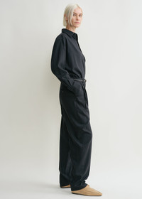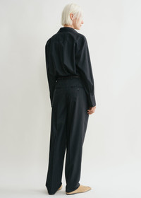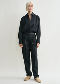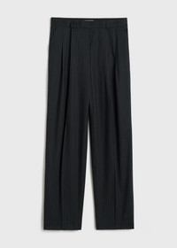 These suit trousers are an expression of TOTEME's distinctive tailoring codes. They are woven from a recycled wool blend with traditional pinstripes and have a low, hip-hugging waistband and straight legs that have pockets and double pleats running seamlessly down the front. Add the coordinating top for a meeting. Details & Fit - Navy - Belt loops - Side and back pockets - Zipper fly - 52% wool, 38% viscose, 10% polyamide - Dry clean - Style number 244-WRB847-FB0280 - Fits large, consider taking a size down - The model is 178cm/510 tall and wears a size 36