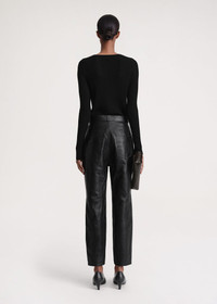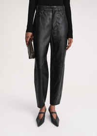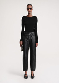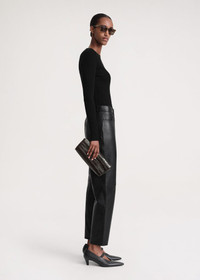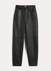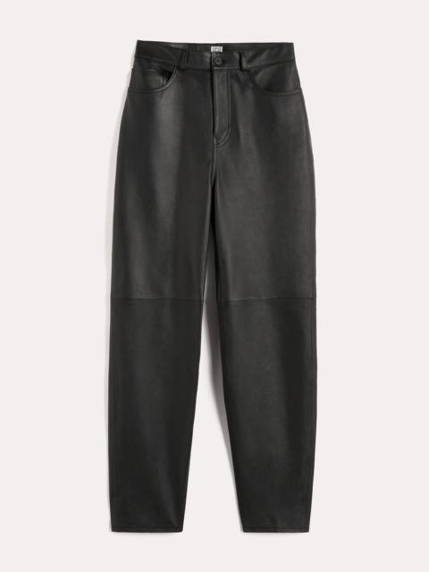 TOTEME reimagines the Tapered leg denim as these statement trousers, made from buttery lamb leather for a rebellious twist. They have a figure-hugging high waist with belt loops and a flattering back yoke, five pockets and zipper fastening. Simply add a knitted top for an after-dark look. Details and fit - Black - Belt loops - Five pockets - Zipper fly - 100% Lamb leather - Specialist clean - The model is 179cm/5’10” tall and wears a size 36 - True to size, high waist - Style number 234-WRTWBM130-LE0021