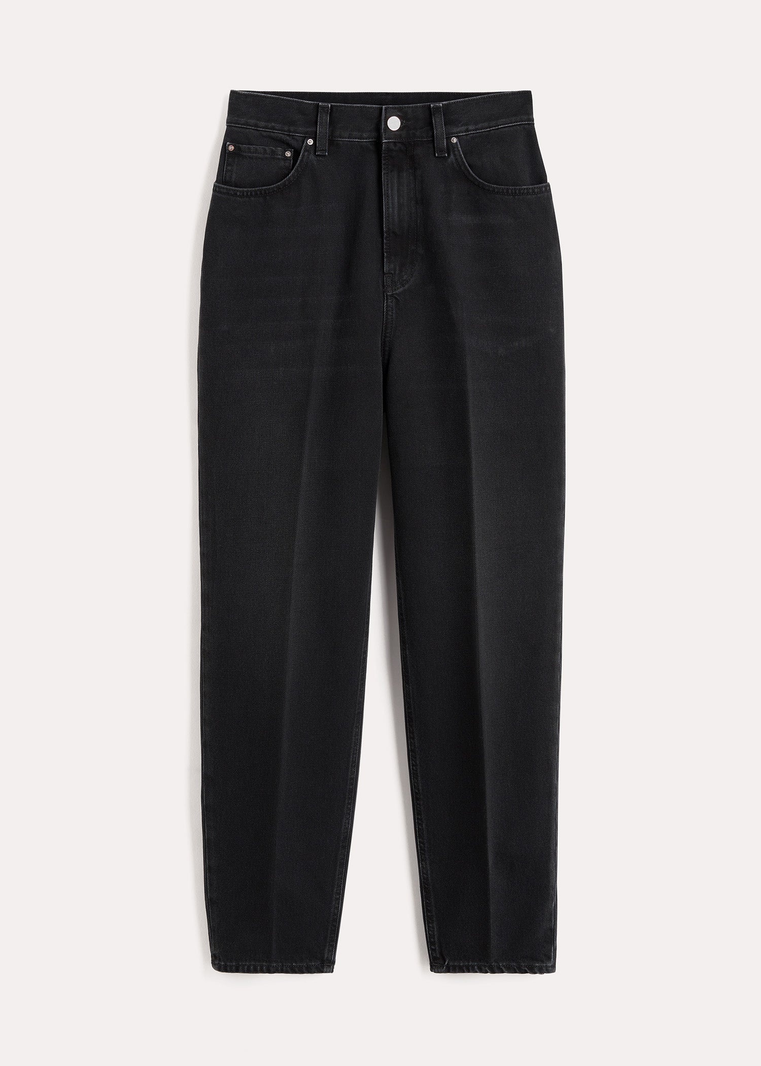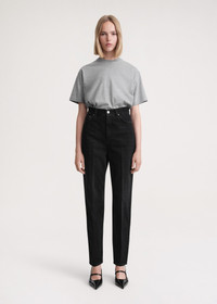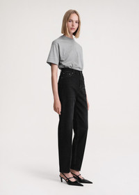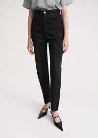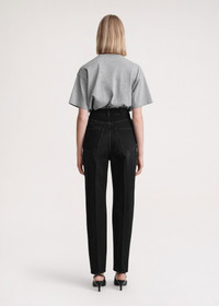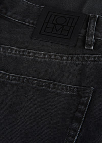 TOTEME jeans inspired by tailored trousers with carrot-shaped tapered legs that fit loosely at the hips and thighs. They're made in Italy from structured organic-cotton denim that will mold to fit you perfectly over time, and have a mid waist with a zipper fly, five pockets, and a monogram patch. Add sneakers for a walk in the park or boots for a dinner date. Details & Fit - Faded black - Zipper fly, silver-tone hardware - Belt loops, five pockets - Monogram leather patch - 100% Organic cotton - 30°C Machine wash - Style number 234-231-744 - The model is 178cm/510 tall and wears a size 26/34 - Relaxed fit on the hips, consider taking a size down