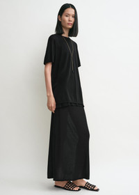 TOTEME knitwear piece inspired by an oversized tee to channel a laidback mood. It is knitted from fluid Lyocell infused with a touch of cashmere for softness and warmth, then finished with a ribbed round neck and dropped shoulders. Leave it untucked over a tonal skirt or trousers. Details & Fit - Black - Light, semi-sheer knit - 90% lyocell, 10% cashmere - Cool hand wash - Style number 253-WRT0531-YA0079 - The model is 181cm/511 tall and wears a size S - Oversized fit, straight silhouette