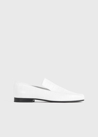 TOTEME reinterprets classic loafers with this minimalist pair, which is embossed with a modern croco pattern. They're made from leather sourced via the Leather Working Group and set on a small stacked heel with a rubber insert. Wear them to work with tailored separates. Details & Fit - White - Tonal leather lining - Black leather sole, rubber insert 100% calf leather; lining: 100% sheep leather; sole: 100% calf leather - Care instructions and dust bag included - Style number 234-WAS813-LE0023 - True to size
