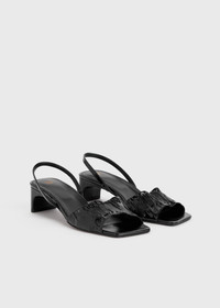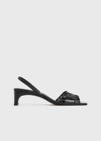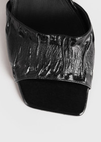 TOTEME sandals set on a contemporary heel with a scooped silhouette. They're crafted in Italy from crinkled patent leather that's gathered at the front for texture and are finished with an elasticated strap, a comfortably padded insole and a mid heel measuring 50mm. Wear them to lunch with trousers and to dinner with a dress. Details & Fit - Black - Leather lining and sole - Elasticated strap - 100% Calf leather; lining: 100% sheep leather; sole: 100% cow leather - Care instructions and dust bag included - Style number 241-WAS1000-LE0046 - Average heel height 50mm/1.4" proportional to shoe size - True to size