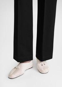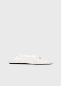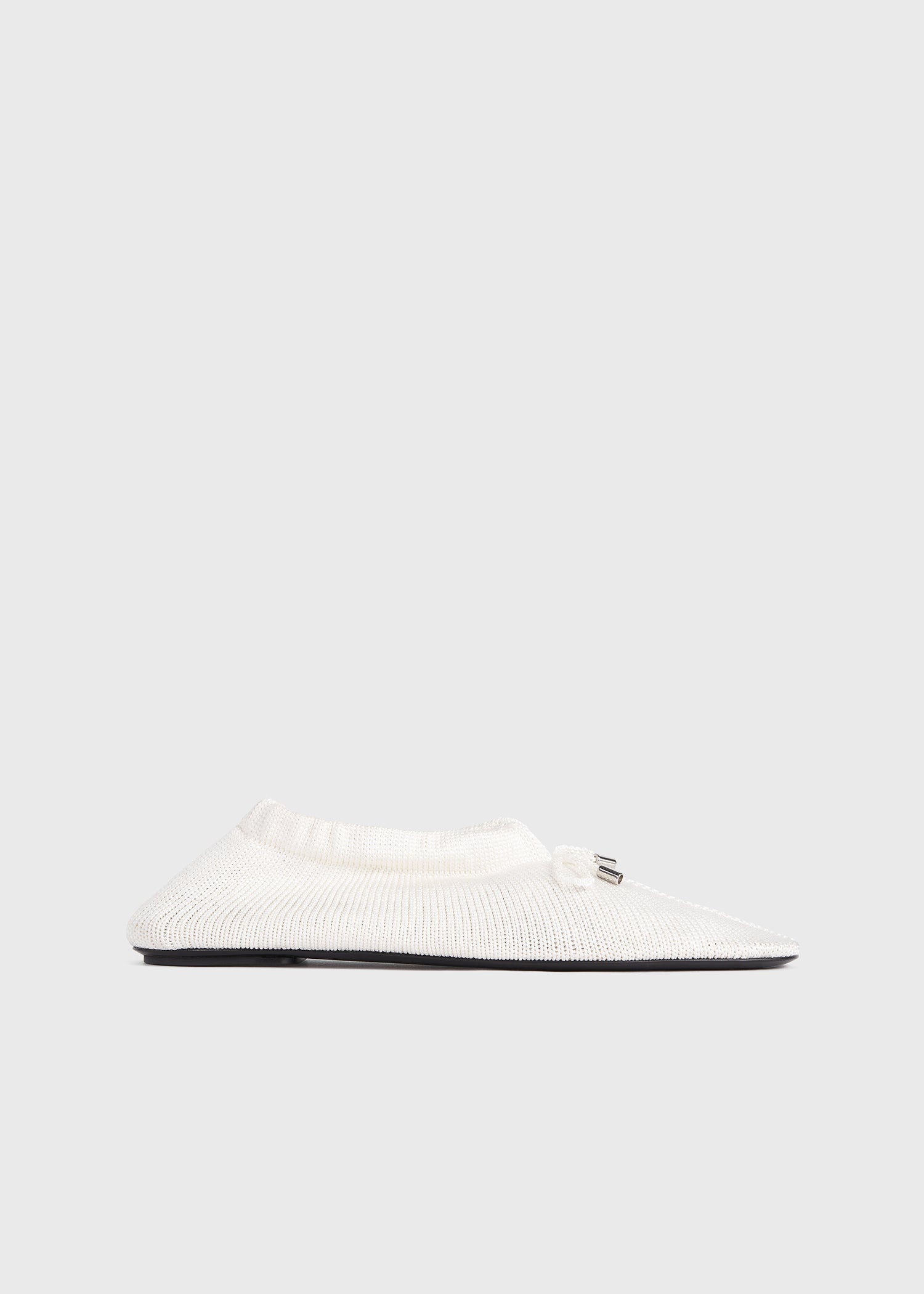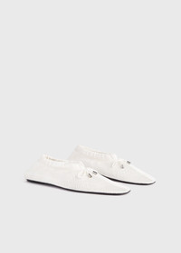 TOTEME ballerina flats knitted from viscose-blend yarns that stretch into a natural, foot-hugging shape. Made in Italy, they have an elasticated top edge with a decorative bow and silver-tone aglets and are set on a smooth leather insole. Let them peep below trousers and jeans. Details & Fit - Cream - Elasticated top edge, silver-tone hardware - Leather insole 83% viscose, 17% polyamide - Care instructions and dust bag included - Style number 242-WAS2358-YA0040 - Elasticated material, consider taking a smaller size