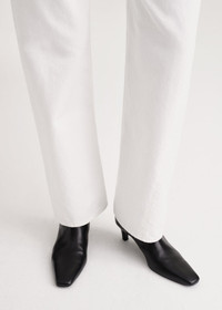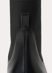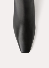 TOTEME ankle boots made in Italy from responsibly sourced, matte leather. They are shaped to a sleek silhouette with a squared pointed toe, an elongated shaft with elasticated panels, a back pull tab, and a leather-covered heel that measures 50mm. Wear them throughout the year with your favorite jeans. Details and fit - Black - 100% Calf leather; lining: 100% sheep leather; sole: 100% calf leather - Care instructions included - Narrow fit – if you have a wider foot, take one size up - Average heel height 50mm/2" – proportional to shoe size - Made in Italy - Style number 214-907-813