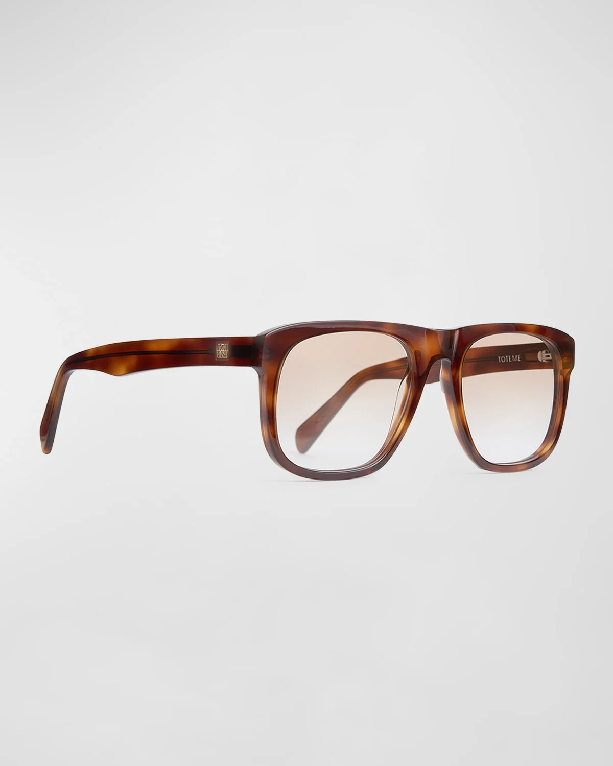 - Toteme "The Navigator" square sunglasses in acetate - Use them to give a directional edge to everyday looks - Solid lenses - Saddle nose bridge - Monogram on temples - Thin, tapered arms - 100% UVA/UVB protection - Made in Italy - Proposition 65 warning for California residents