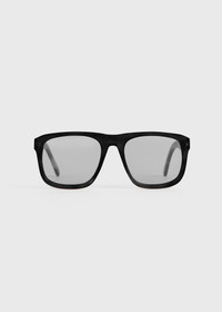 Made in Italy, TOTEME's new The Navigator sunglasses have a statement rectangular frame with a flattened brow edge. The squared grey lenses offer UV protection and more eye coverage, while the light acetate frame has silver-tone monogram plaques at the temples. Use them to give a directional edge to everyday looks. Details & Fit - Black - Non-polarized category 2 lenses for medium brightness, UV400 protection - Lenses can be replaced with prescription lenses - Frame: 100% acetate; lenses: 100% mineral glass - Care instructions, cleaning cloth and pouch included - Style number 242-WAE1083-EC0001 - Frame width 14cm/5.5" - Height 5cm/2" - Bridge height 37cm/1.5" - Arm length 14cm/5.5" - Standard international fit