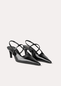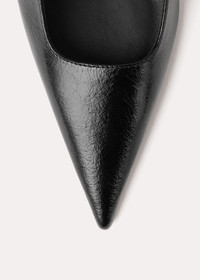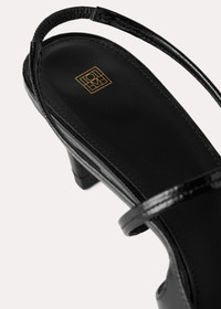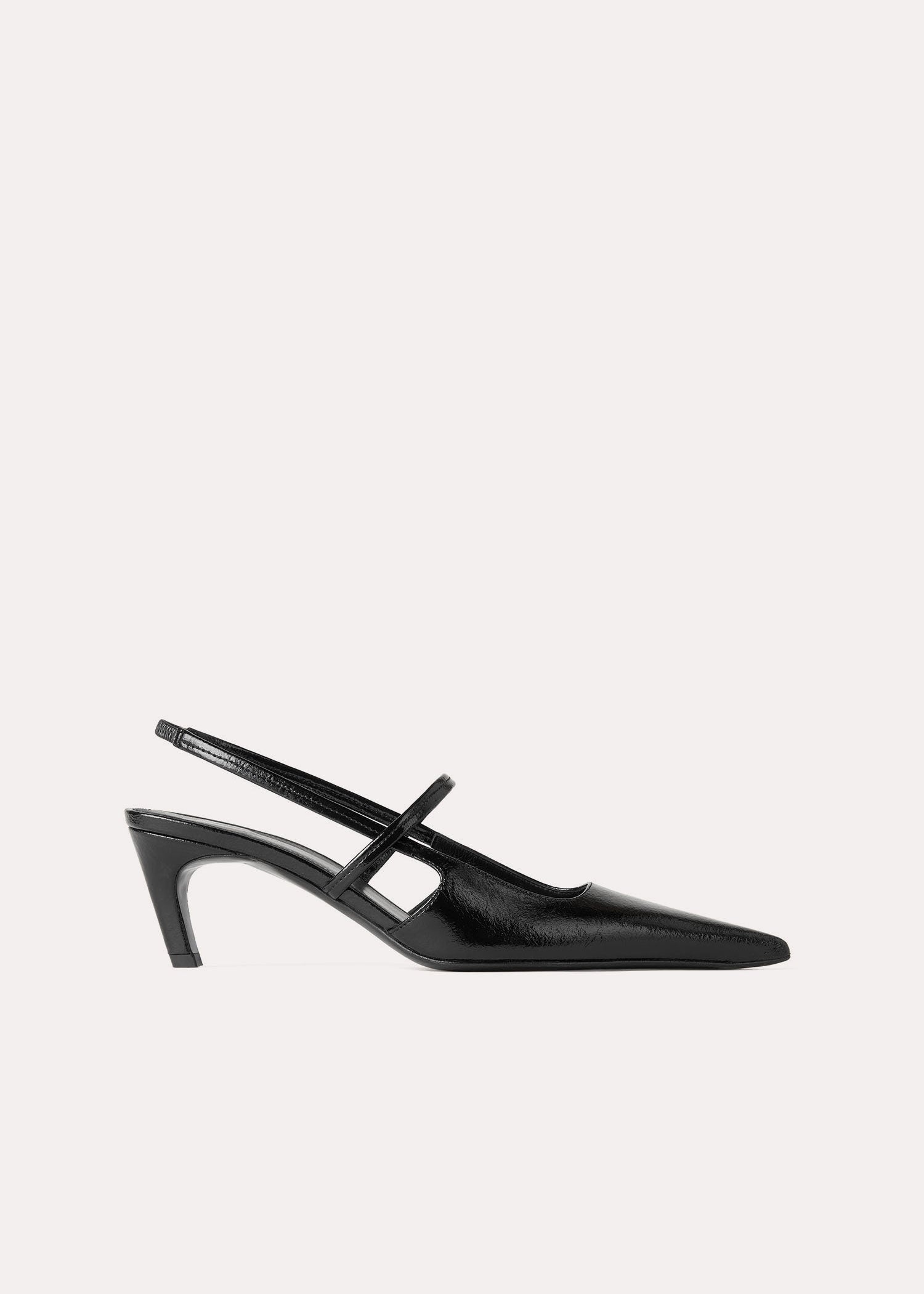 TOTEME slingback heels made in Italy from crackled patent leather. They have a sharp silhouette with a pointed toe, slim elastic straps, soft leather lining and a sculpted heel measuring 50mm. Wear them to go from work to dinner. Details & Fit - Black - Elastic heel strap - Black leather lining - Leather sole - 100% Calf leather; lining: 100% sheep leather - Care instructions and dust bag included - Style number 224-8004-850 - Average heel height 50mm/2" proportional to shoe size - True to size