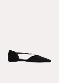TOTEME flats fitted with elasticated straps interlinked in the shape of the letter T. They're meticulously made in Italy from soft suede lined in smooth leather and are set on a leather sole fitted with an anti-slip rubber insert. Keep them in focus under cropped trousers and midi skirts. Details & Fit - Black - Elasticated straps - Leather lining, suede counter heel - 100% Cow leather; lining 100% sheep leather; sole: 100% calf leather - Care instructions and dust bag included - Style number 234-WLGSE082-LE0012 - Slim fit