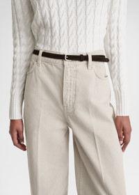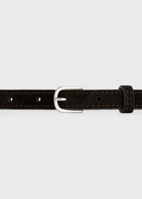 This 15mm-wide version of TOTEME's Slim trouser belt is made from espresso-brown suede that's topstitched for definition and fastened with a polished silver-tone metal buckle. Wear it throughout the week with work and off-duty looks. Details & Fit - Espresso brown - Silver-tone metal buckle - 100% Cow leather - Care instructions and dust bag included - Style number 234-WLGBT212-LE0004 - Adjustable fit - Length 70cm/27, 80cm/31 or 90cm/35 (measured from buckle base to middle hole) - Width 1.5cm/0.6" - Adjustable fit - Length 70cm/27, 80cm/31 or 90cm/35 (measured from buckle base to middle hole) - Width 1.5cm/0.6"