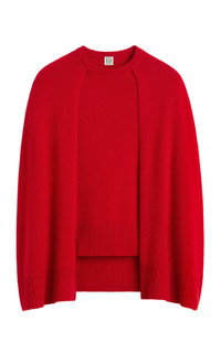 With its signature clean lines and minimalist style, Stockholm-based Toteme is the quintessential Scandi-cool. Elin Kling designs each collection as a modern uniform, looking to vintage pieces for inspiration and giving its cult following a dress code for every day. A crew-neck knit layered over a longer cape for dramatic effect. It is knitted from warm cashmere with a soft hand feel and ribbed edges. Offset the soft drape with tailored trousers. PRODUCT DETAILS - Resort '26 - Slip on - Composition: 100% cashmere - Designer color: Poppy - Dry clean - Imported