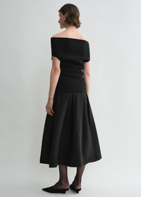 TOTEME top outlined with an alluring off-the-shoulder neckline that can also be styled as a cowl neck. It is double-knitted from heavyweight, stretch viscose fibers with a dense, compact effect that wraps the body into a flattering slim silhouette. Pair it with a full skirt for an evening date. Details & Fit - Black - 79% viscose, 16% polyester, 4% polyamide, 1% elastane - Cool hand wash - Style number 251-WRT4650-YA0137 - The model is 178cm/510 tall and wears a size S - True to size, slim fit