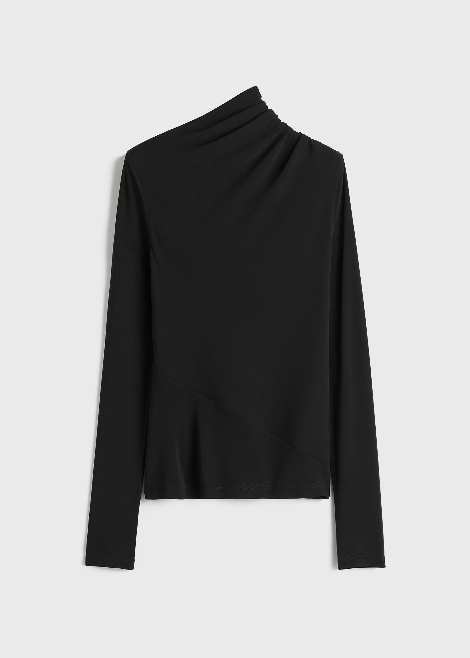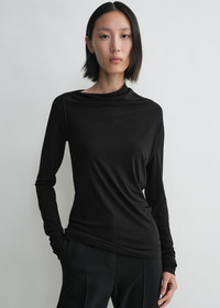 This long-sleeved TOTEME top is led with an asymmetrically draped neckline for a modern edge. It is made from body-wrapping viscose jersey with a slip-on construction for a second-skin fit. Style it with trousers for a social lunch. Details & Fit - Black - 96% viscose, 4% elastane - Dry clean - Style number 251-WRT4462-FB0162 - The model is 180cm/5'11 tall and wears a size 36 - True to size