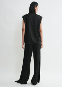 Oversized and long TOTEME slip-on top constructed with a funnel neck that slouches effortlessly over a loose-fitting, sleeveless body. Offset the ample silhouette with a belt. Details & Fit - Black - 56% viscose, 44% acetate - Dry clean - Style number 251-WRT0460-FB0344 - The model is 180cm/5'11 tall and wears a size 36 - True to size, designed with an oversized, long silhouette