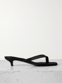 TOTEME’s sandals are modeled on the humble flip flop, but with a chic twist. Made from soft satin, they have elegant toe posts and subtle 35mm kitten heels. Size & Fit - Fits true to size, take your normal size - Italian sizing Details & Care - Heel measures approximately 35 mm/ 1.5 inches - Black satin - Slip on