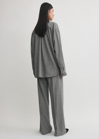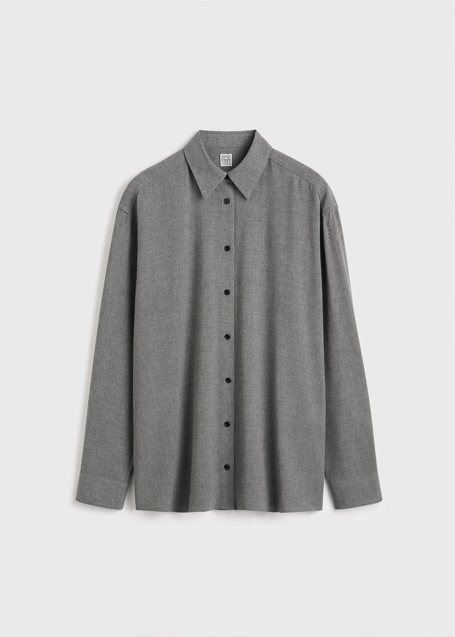 Classic shirt reworked in a fluid viscose-wool blend for a polished everyday look. It has a longline, oversized silhouette with dropped shoulders and a buttoned placket and cuffs. Wear it in trans-seasonal weather over a simple tee. Details - Mid grey - Buttoned placket and cuffs - 90% viscose, 10% wool - Dry clean - Style number 254-WRT0480-FB0016 Fit information - The model is 180cm/5'11” tall and wears a size 36 - Long, oversized fit with dropped shoulders Origin & Certificates - Country of origin: Turkey - Main supplier: Mergu
