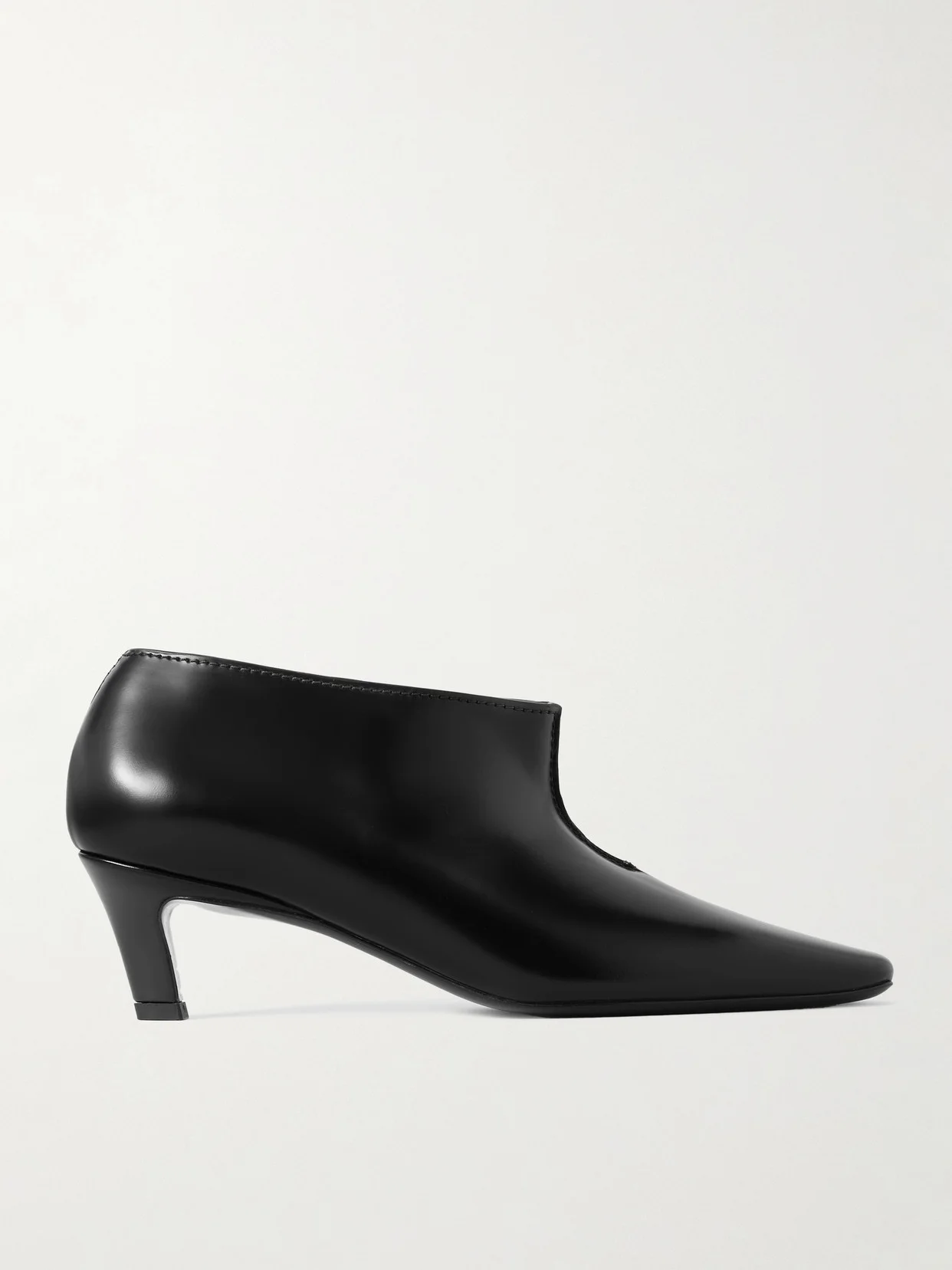 TOTEME's aptly named boots have a 'Wide Shaft' that sits just below the ankle. Crafted in Italy from glossed-leather, they have elongated squared toes and 55mm curved kitten heels. Show yours off with midi dresses and cropped tailoring.
