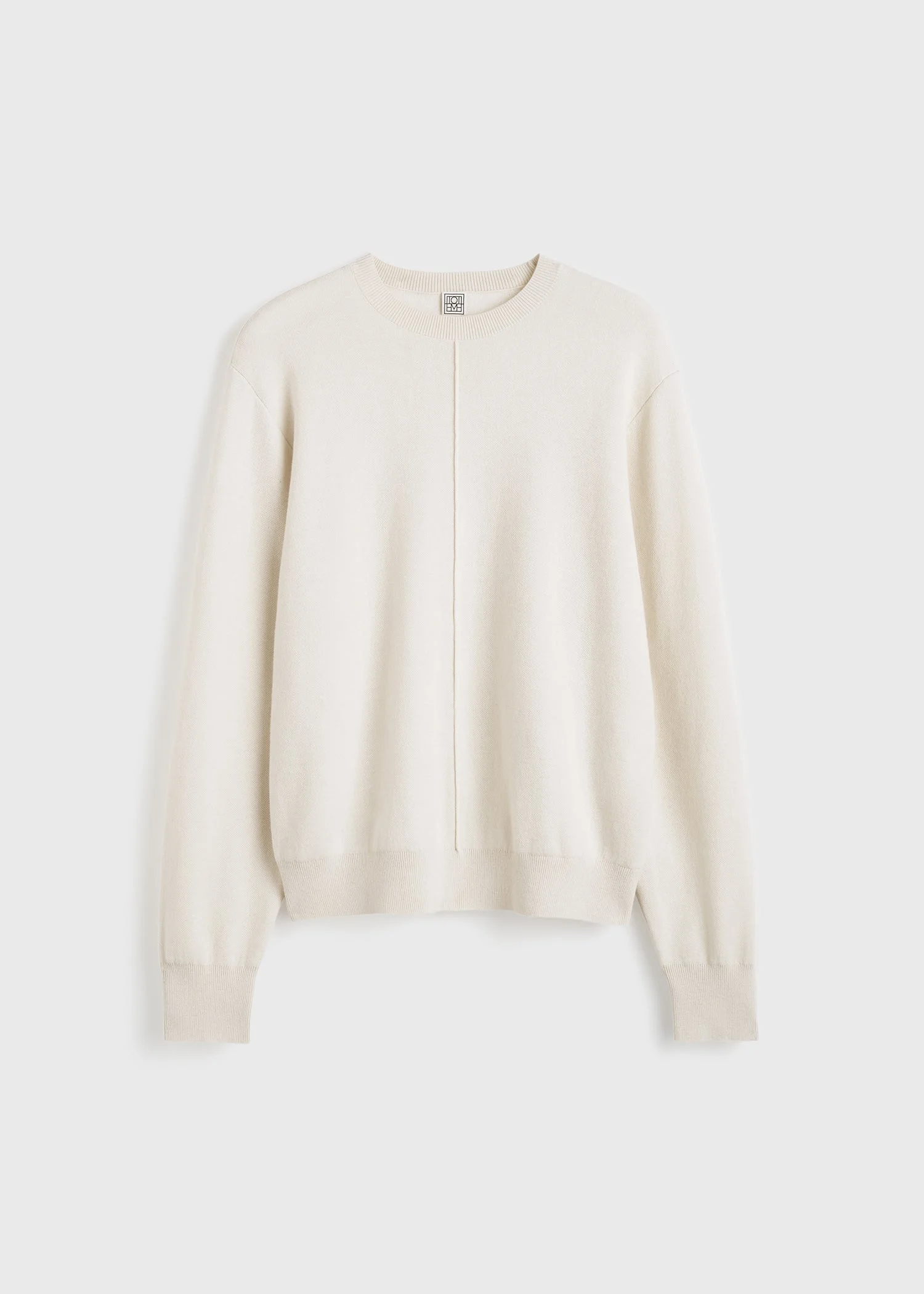 Designer’s note: “A laidback piece from our athleisure archives, imagined as a comfortable travel set or for a morning walk.” Details - Ecru - Ribbed edges - Dropped shoulders - Front and back pintucked seams - Soft cotton-cashmere jersey - 41% Wool RWS, 35% Organic Cotton, 15% Cashmere, 9% Elastane - Cool hand wash - Style number 241-WRT1528-YA0035 Fit information - The model is 180cm/5’11” tall and wears a size S - Boxy fit, slightly tapered at the waist Origin & Certificates - Country of origin: China - Main supplier: Hangzhuo Springair Ace Textile Co. Ltd