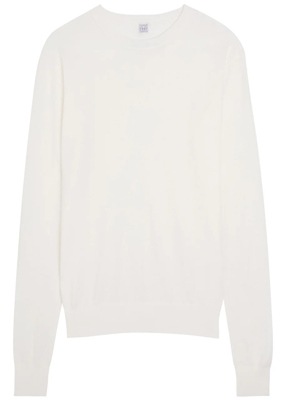 Info & Care Toteme wool-blend jumper Crew-neck, ribbed trims Slips on 75% wool, 25% silk Hand wash Size & Fit Length shoulder to hem: 25 inches/ 63.5cm Midweight Regular fit Model is 5'10"/ 178cm and wears a size;small