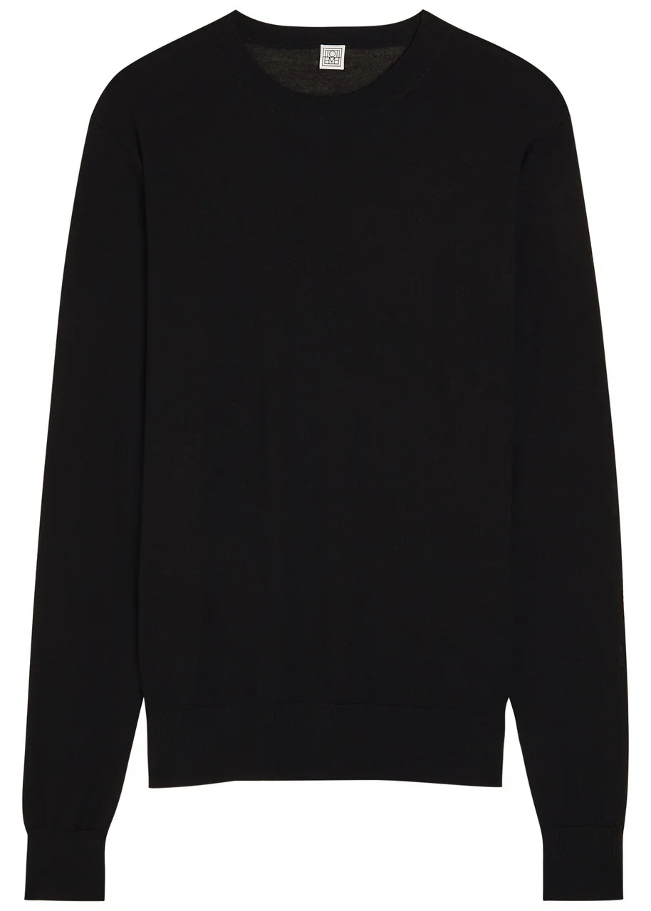 Info & Care Toteme wool-blend jumper Crew-neck, ribbed trims Slips on 75% wool, 25% silk Hand wash Size & Fit Length shoulder to hem: 25 inches/ 63.5cm Midweight Regular fit Model is 5'10"/ 178cm and wears a size;small