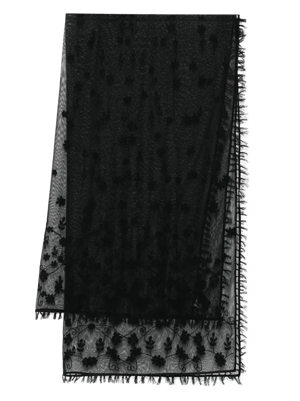 tulle shawl Highlights - Black - Rectangle shape - Fringed edge - All-over floral embroidery Imported Composition Recycled Polyester 100% SIZE & FIT Measurement LENGTH 70.86 in(180 cm) WIDTH 35.43 in(90 cm) Washing instructions Hand Wash