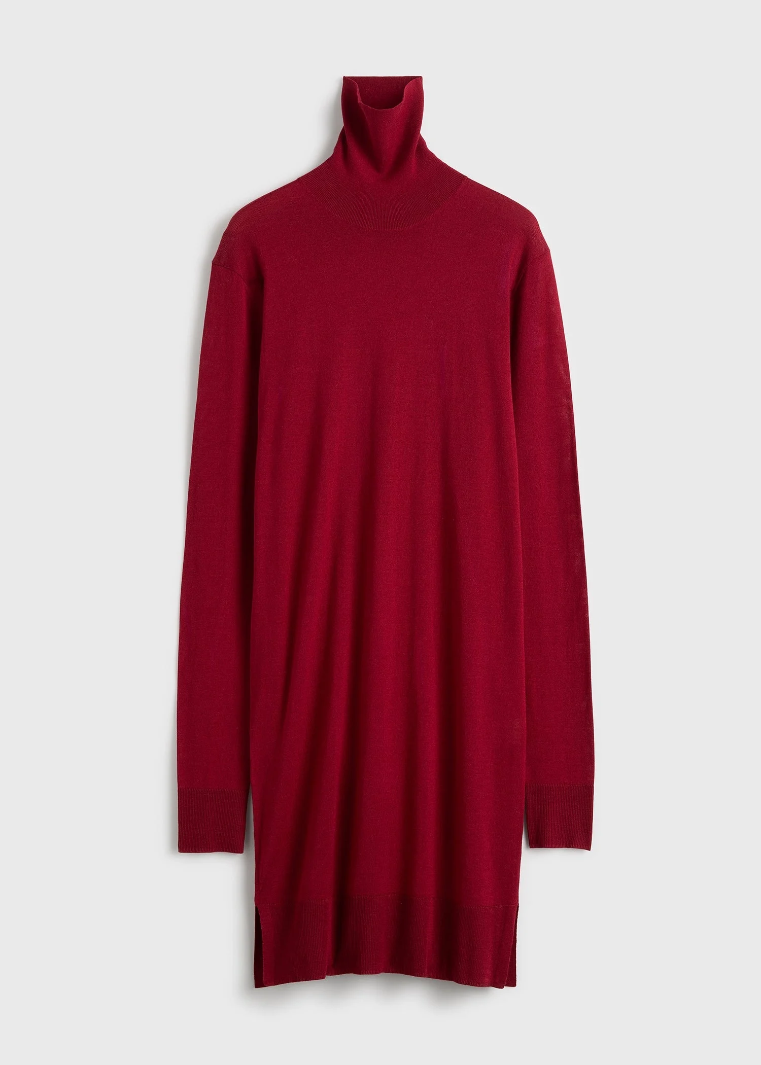 First seen on the Fall Winter 25 runway, the Turtleneck dress has been tweaked with slightly slimmer sleeves to complement the extra-long cuffs, which slouch effortlessly at the wrists. It is knitted from fine merino wool and silk to a relaxed slim silhouette with slits at the knee-length hem for ease of movement. Details - Red - Extra-long sleeves - Side-hem slits - 75% RWS wool, 25% silk - Cool hand wash - Style number 254-WRD0263-YA0087 Fit information - The model is 180cm/5'11” tall and wears a size S - Loose fit Origin & Certificates - Country of origin: China - Main supplier: Dongguan Competent Knitting Co Ltd