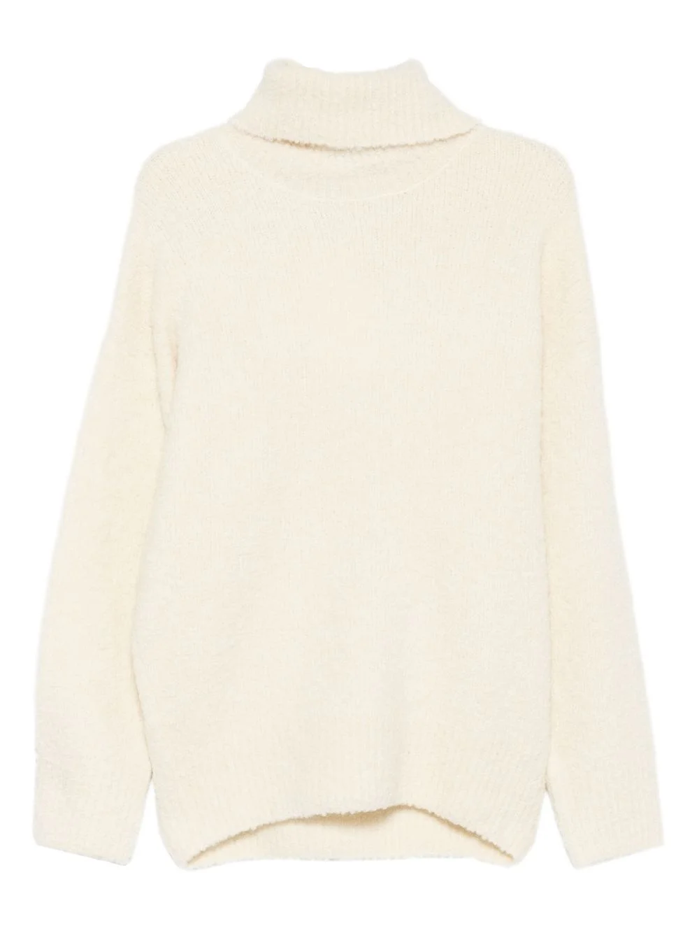 turtleneck sweater Highlights - Milk white - Boucle texture - Turtleneck - Long sleeves - Ribbed cuffs - Ribbed hem Imported Composition Alpaca 44%, Wool 43%, Polyester 11%, Elastane 2% SIZE & FIT Model measurements Height 5 ft 10 in(1.77 m) Bust/Chest 32.28 in(82 cm) Hips 35.03 in(89 cm) Waist 25.19 in(64 cm) Washing instructions Read Manufacturer Guidelines