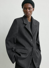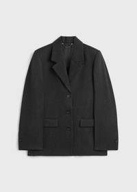 This tailored jacket is part of a modern skirt suit juxtaposing classic monochrome twill with a sharp, directional construction. It has an elongated, boxy silhouette that fastens neatly with three buttons. Details & Fit - Charcoal - Buttoned placket and cuffs - Flap pockets - Satin lining, internal pocket - 100% RWS wool; lining: 100% viscose - Dry clean - Style number 261-WRZ0063-FB0562 - The model is 180cm/5'11 tall and wears a size 36 - Oversized fit, boxy silhouette