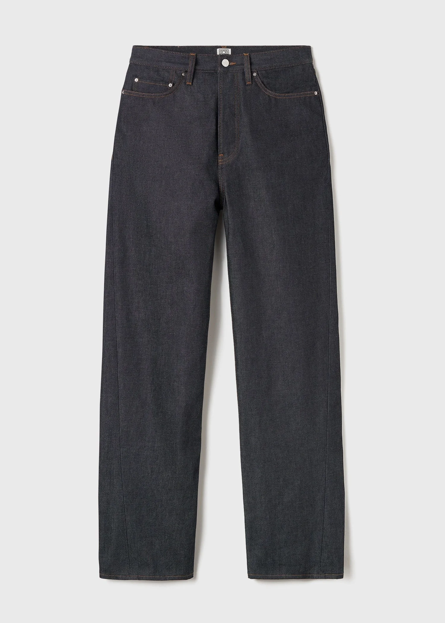 Building on TOTEME's Twisted seam denim, these jeans have a low-to-mid waistline and slightly wider and longer straight legs with some space at the thighs. They're made in Italy from mid-weight and rigid organic-cotton denim that's finished with five pockets, a leather monogram patch and a button fly. Wear them as intended for a relaxed fit or go down a size for a more fitted look. Details & Fit - Raw - Button fly, silver-tone hardware - Belt loops, five pockets - Monogram leather patch - 100% Organic cotton - 30°C Machine wash; avoid rubbing against light-colored fabrics and surfaces as some discoloration will occur - Style number 231-240-738 - Low-to-mid waist, long straight legs - The model is 178cm/510 tall and wears a size 26/34 - This style can run big, choose your usual size for a relaxed look or consider taking a size down