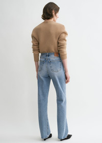 Building on TOTEME's Twisted seam denim, these jeans have a low-to-mid waistline and slightly wider and longer straight legs with some space at the thighs. They're made in Italy from mid-weight and rigid organic-cotton denim that's finished with five pockets, a leather monogram patch and a button fly. Wear them as intended for a relaxed fit or go down a size for a more fitted look. Details & Fit - Worn blue - Button fly, silver-tone hardware - Belt loops, five pockets - Monogram leather patch - 100% Organic cotton - 30°C Machine wash - Style number 231-240-741 - Low-to-mid waist, long straight legs - The model is 178cm/510 tall and wears a size 26/34 - This style can run big, choose your usual size for a relaxed look or consider taking a size down